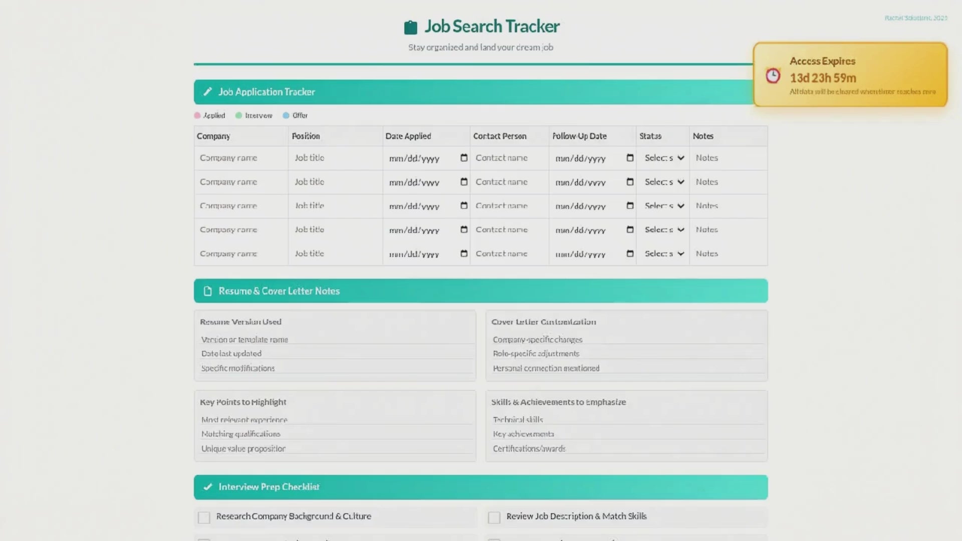 Job Search Tracker Template | 14-Day Access